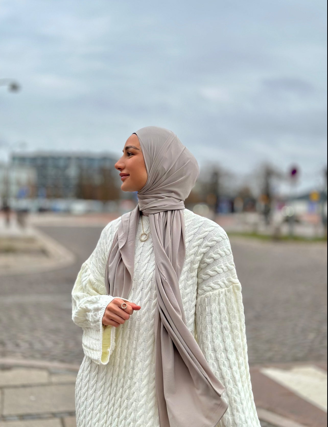 Sarah collection’s bambus Jersey hijab er lavet i det letteste og blødeste bambus materiale. Stoffet føles ikke tungt omkring hovedet. Det er et stof med ekstra stræk, så du kan have flere valgmuligheder med at style det. Det bedste ved dette stof er, at du ikke skal rette på dit tørklæde, da det sidder uden at glide. Bambus er et miljøvenligt valg, når det kommer til fremstilling af tekstiler.