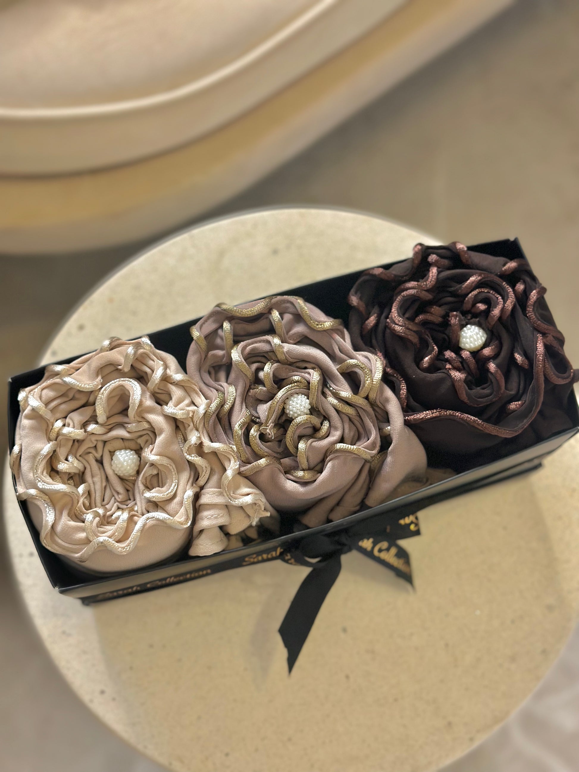 Overrask en du holder af med Sarah Collection’s unikke gaveæske! Denne smukt sammensatte gave indeholder tre af vores luksuriøse Flowy Jersey Hijabs, rullet og arrangeret som en elegant blomst. Hver hijab er fremstillet af blødt, åndbart materiale, der falder smukt og giver maksimal komfort hele dagen 🎀