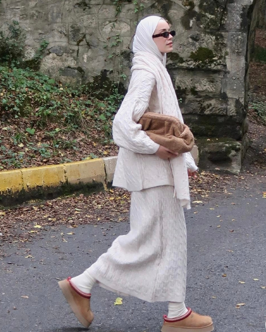 Crafted from high-quality knit fabric, the set offers a soft, cozy feel while maintaining a structured and luxurious look. The relaxed silhouette allows for graceful movement, making it perfect for both everyday wear and special occasions. Thoughtfully designed for a modest yet modern style, this set embodies understated luxury and versatility.