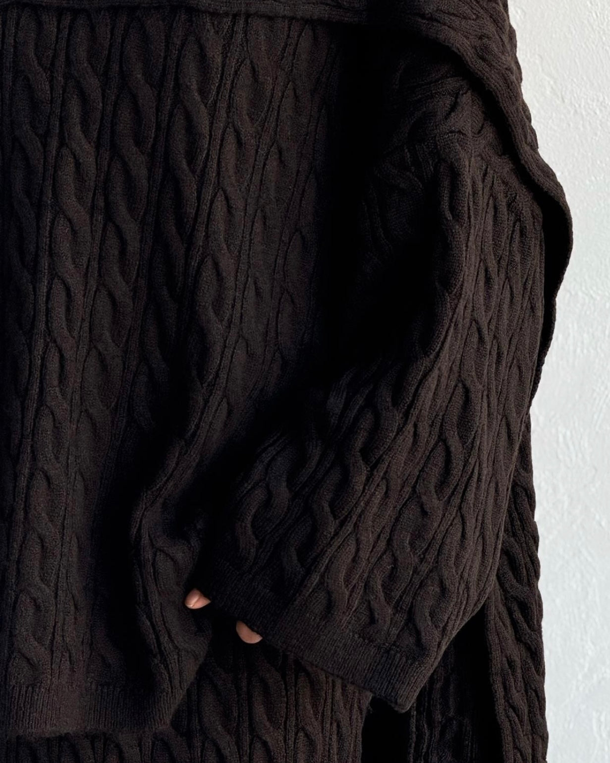 Elevate your wardrobe with our Premium 3-Piece Cable Knit Set, designed for timeless elegance and effortless comfort. This sophisticated set features a beautifully textured cable-knit top, a matching long skirt, and a coordinating shawl that adds both warmth and refinement.
