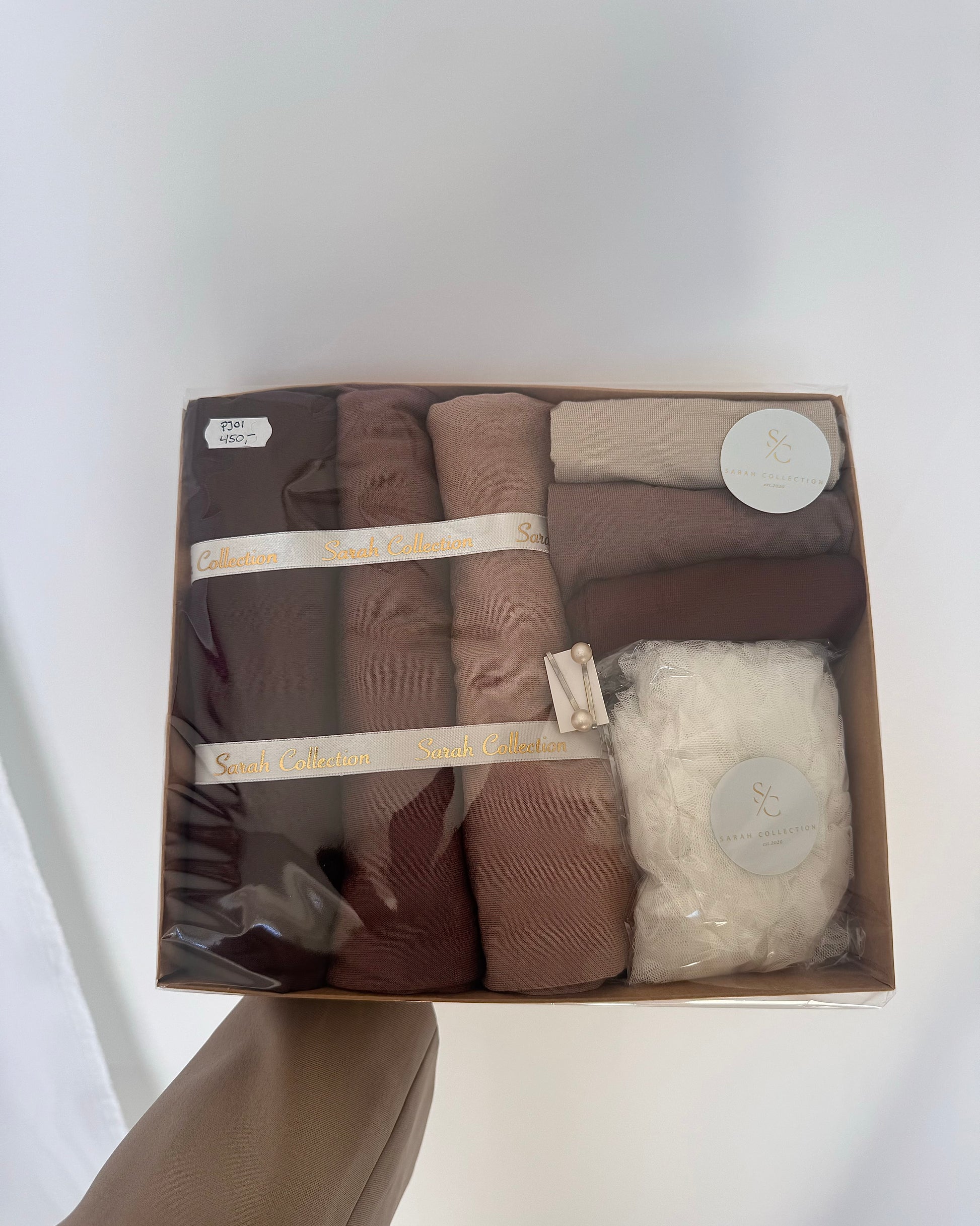 Vores starterpakke er skabt til dig, der ønsker at begynde at bære tørklæde på en enkel og stilfuld måde. Pakken indeholder tre af vores populære plain jersey-tørklæder i farverne lys beige, Mælkebrun og brun – tidløse nuancer, der passer til enhver garderobe. Jersey-stoffet er et praktisk valg for nybegyndere, da det er blødt, åndbart og nemt at style uden at glide.