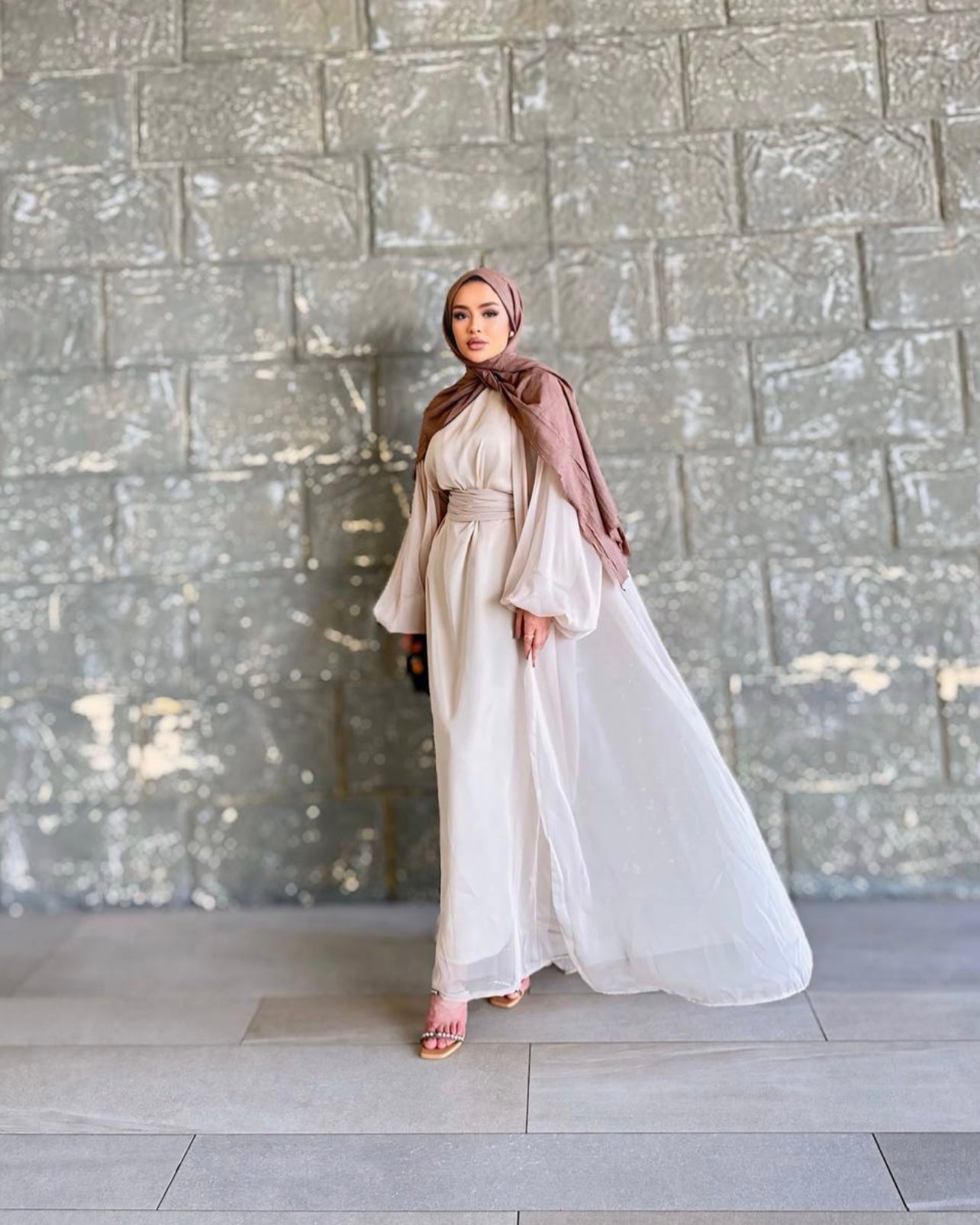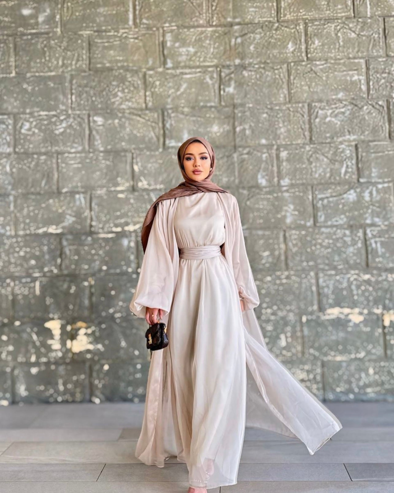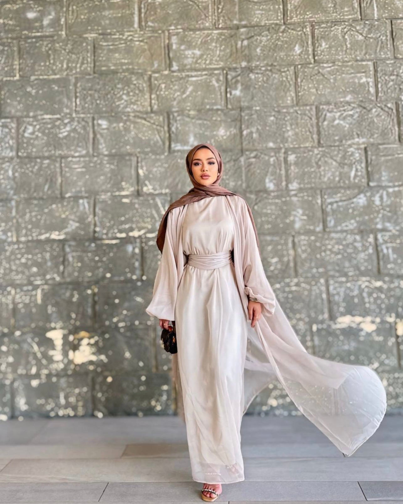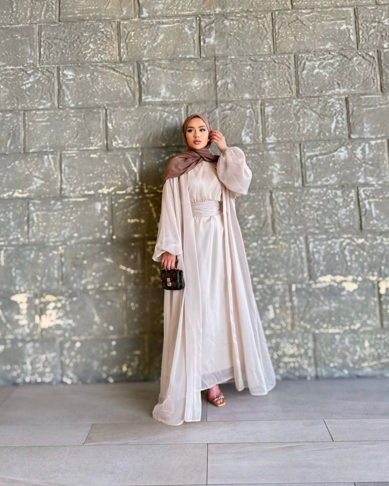 Introducing Sarah Collection’s Alia 2-piece Chiffon Abaya Set, a perfect blend of modesty and sophistication, designed to keep you cool and stylish in the warmer months. This two-piece set features a underdress and a flowing, lightweight kimono overlay, making it an ideal choice for special occasions.