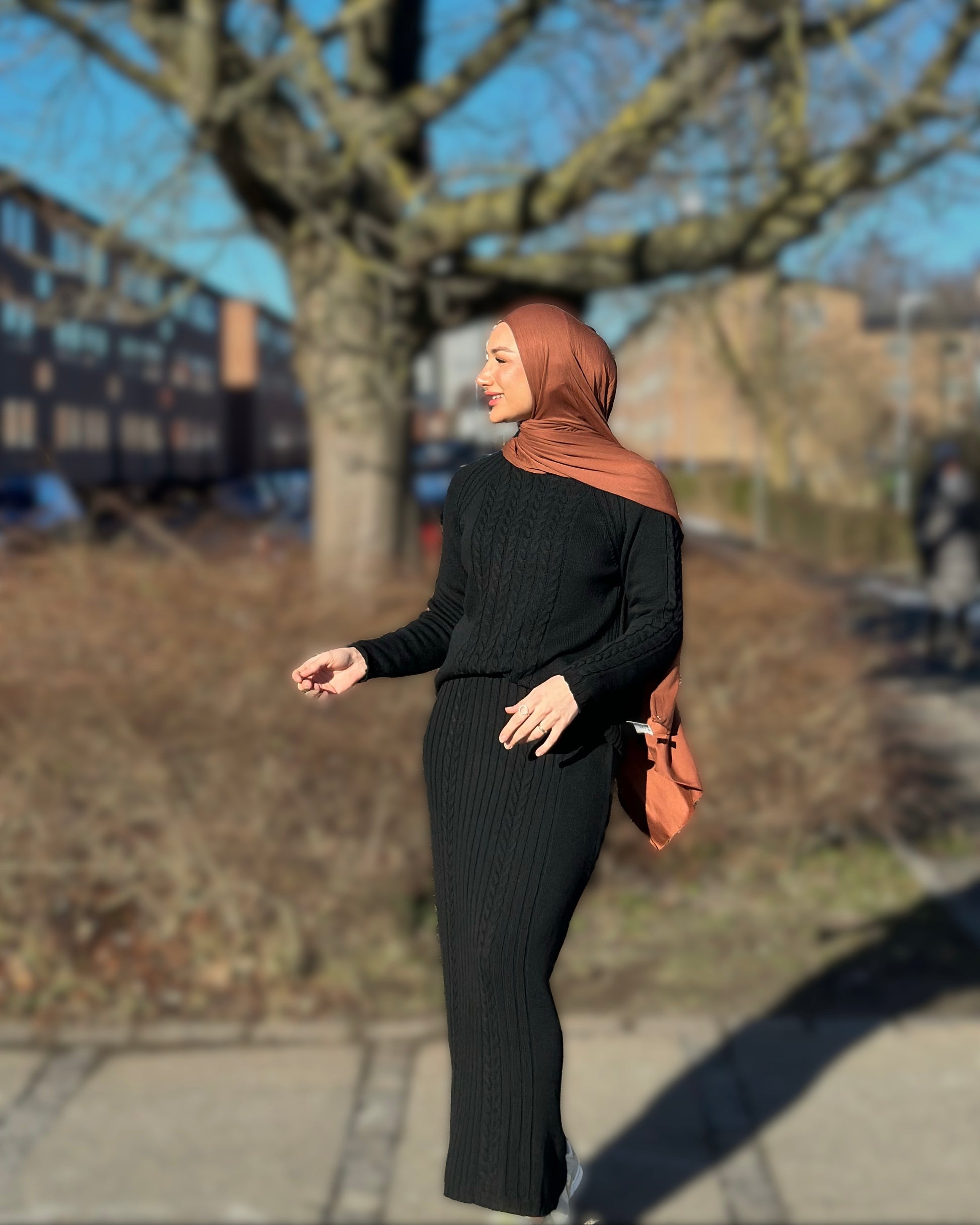 Cozy Kabel Knitted set - black tea
