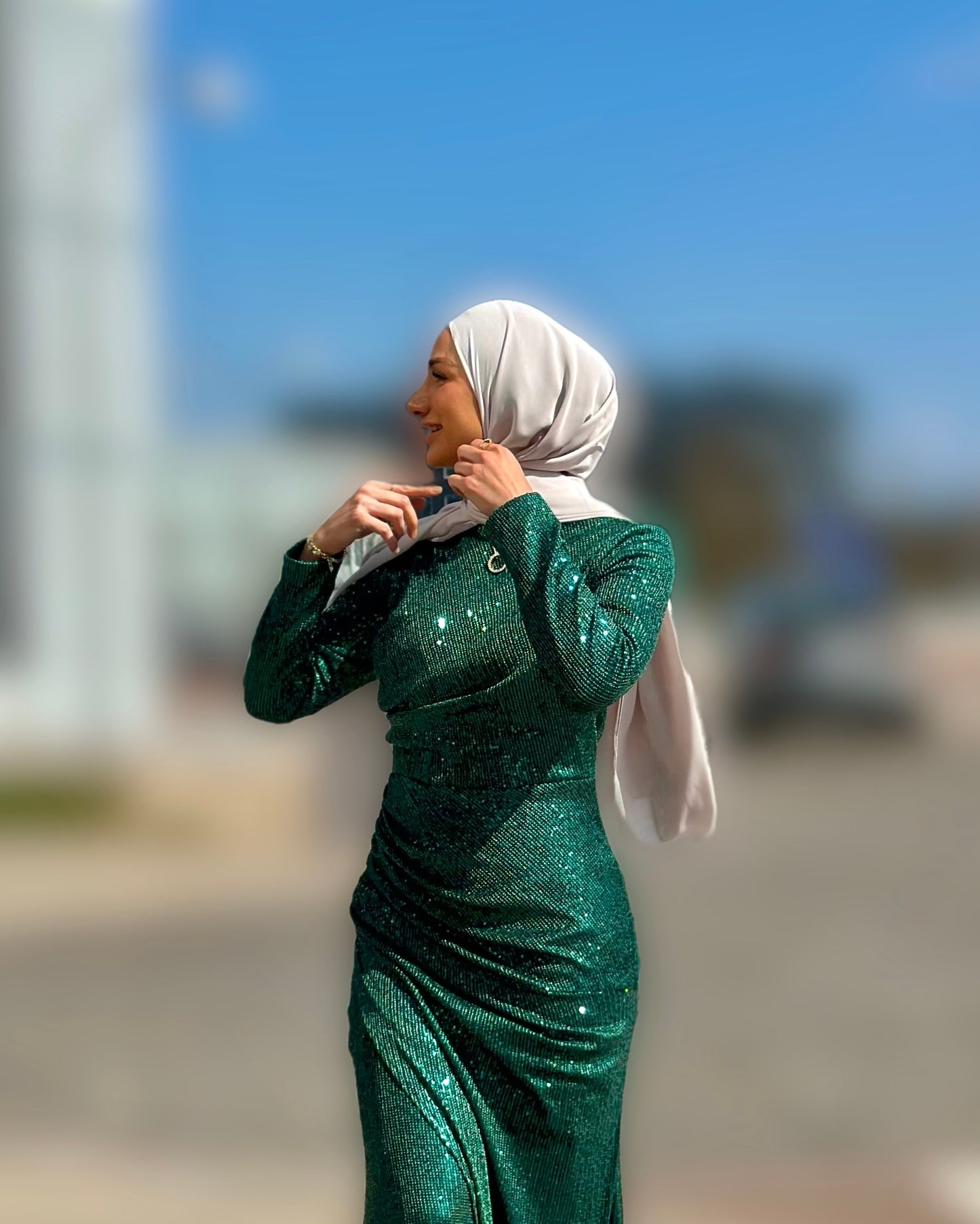 Denne kjole er lavet af et stretchy materiale, så det føles behageligt at have på.