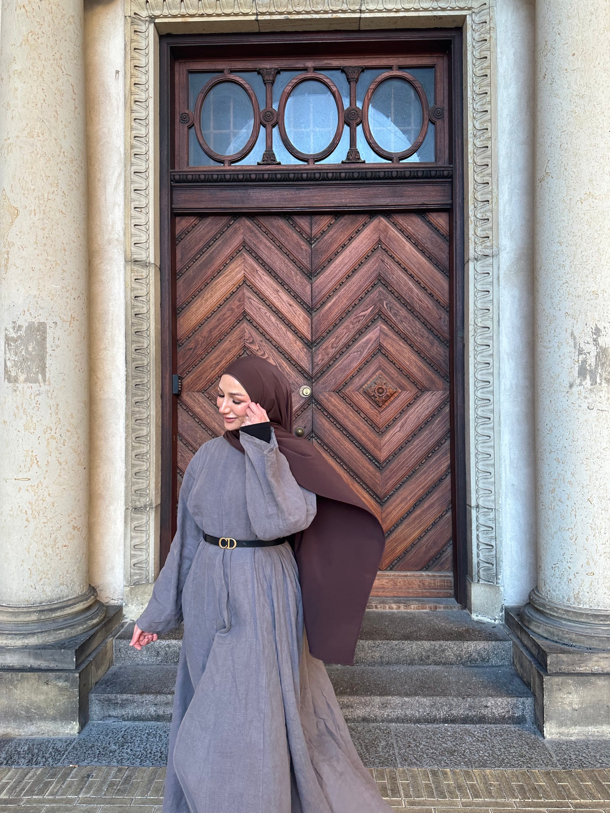 Its fluid drape and subtle sheen give it the name Liquid – gliding on smoothly and adapting naturally to your movements. Whether you're dressing for a busy day or an elegant evening, the Liquid Hijab adds a refined finish to any look.