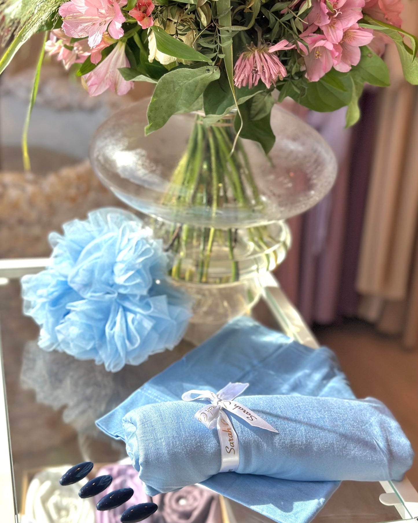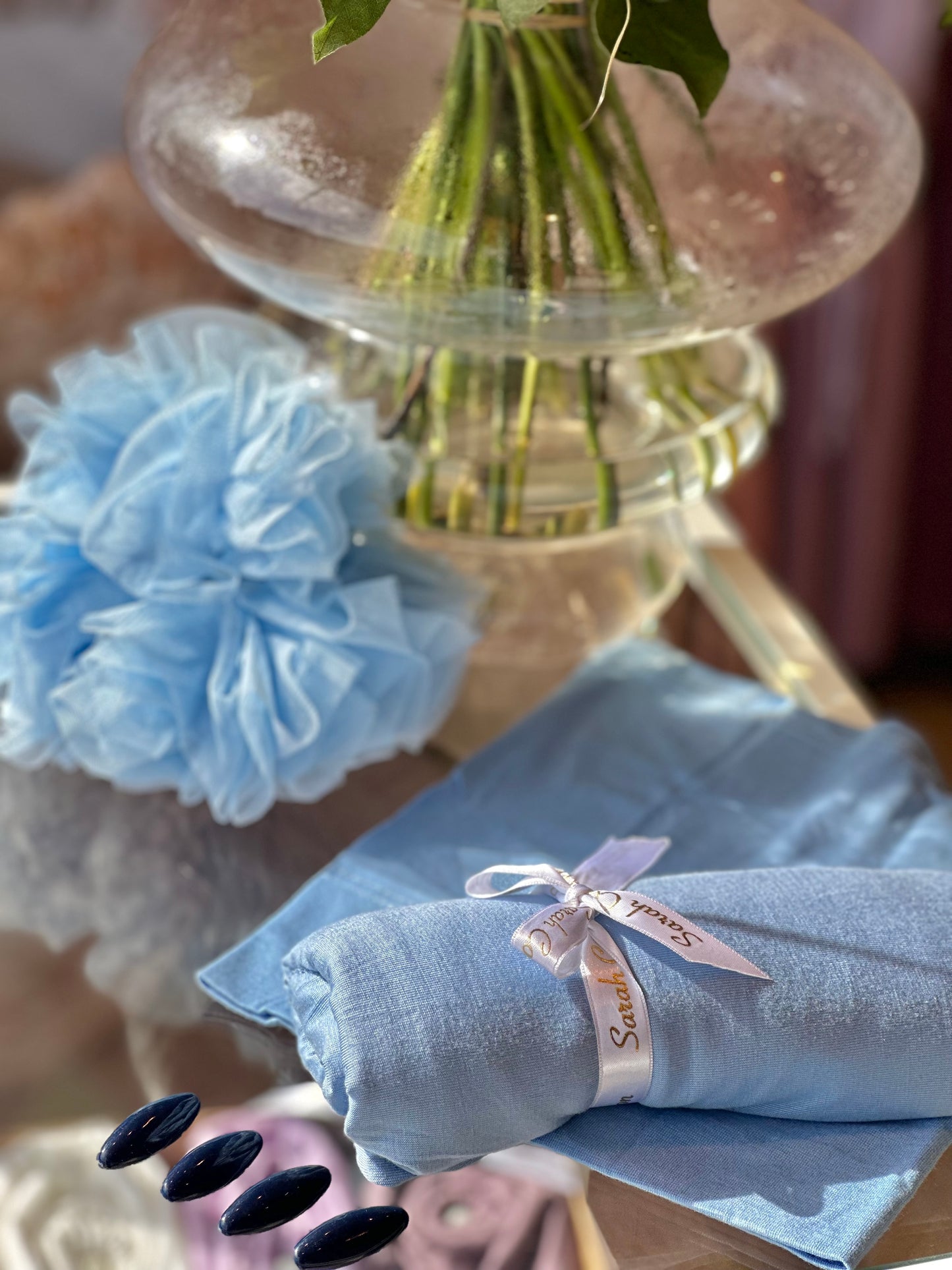 Sarah Collection har samlet 4 basic items til dig der ønsker en nem start. I dette kit har vi valgt vores Lux Jersey Hijab i BAmy blue med vores matchende tube formet undercap og 4 sikkerhedsnåle samt vores scrunchie, som giver en fin volume til hovedeformen.