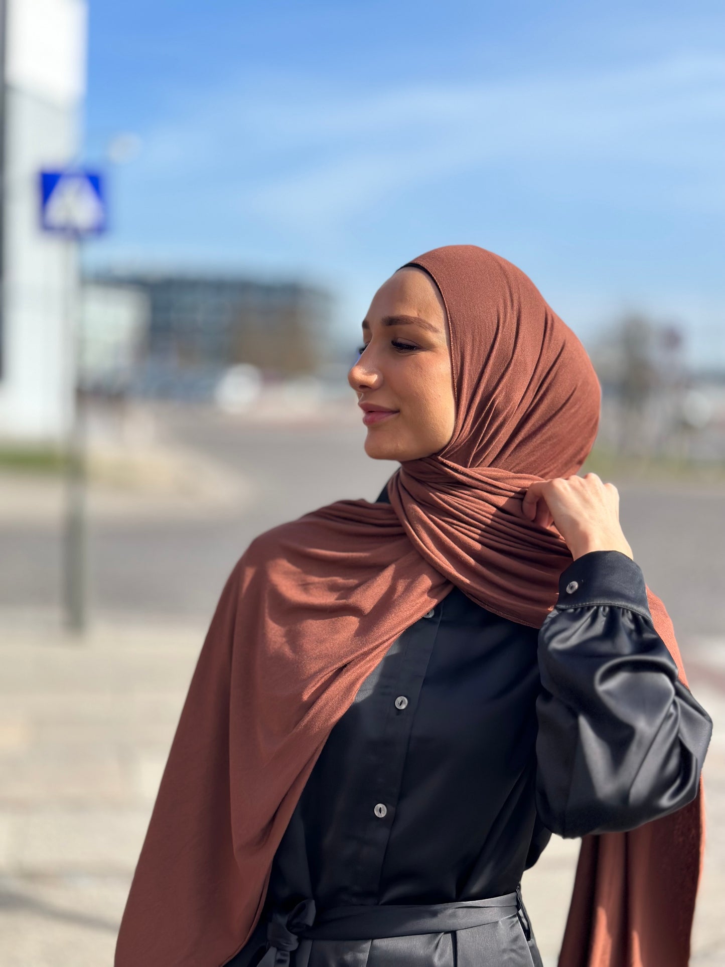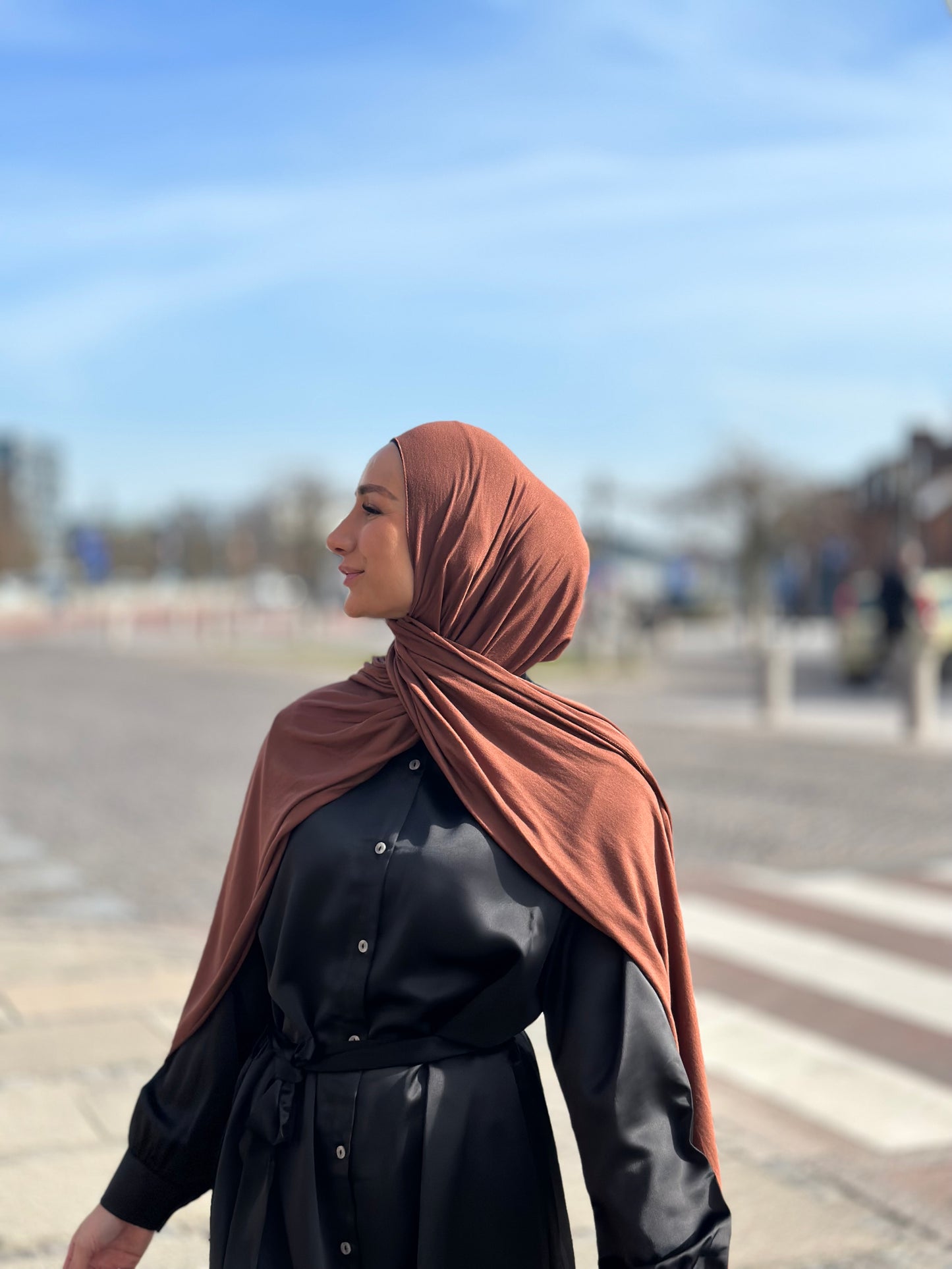 Sarah Collections “Pain Jersey” har den perfekte længde til at style sin Hijab med. Stoffet er elastisk & gør det nemmere for dig, at arbejde med.