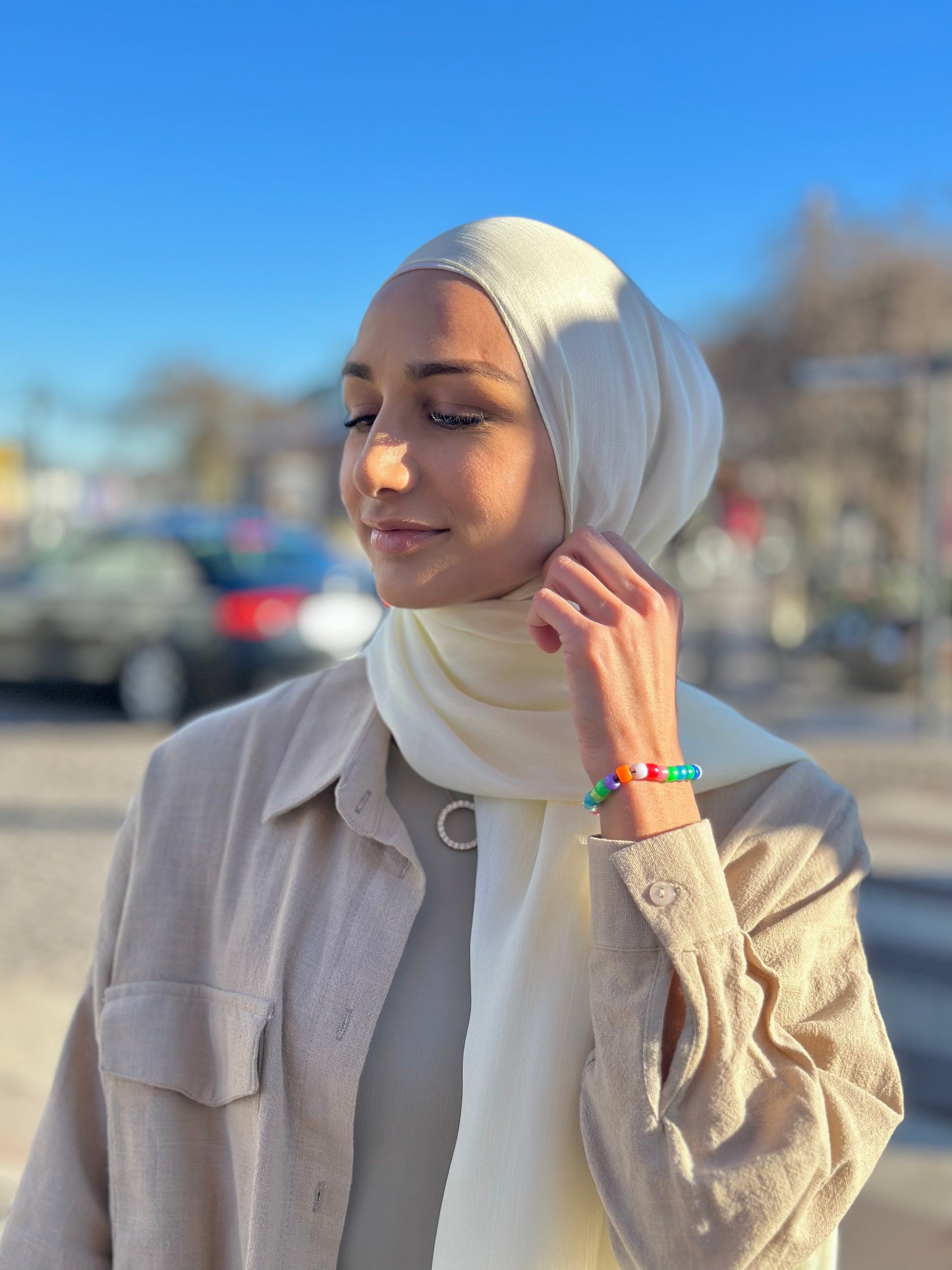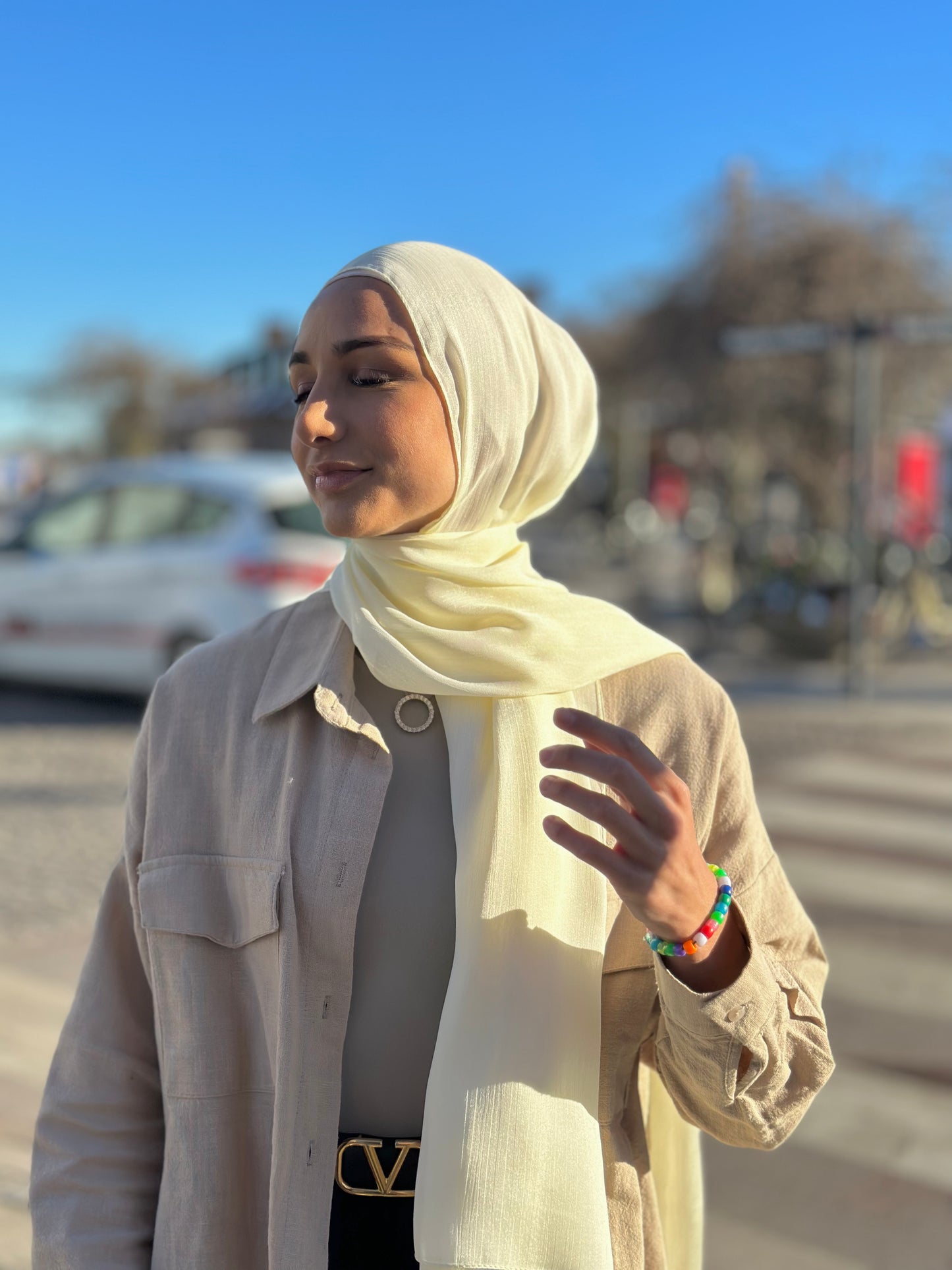 Elevate your look with the elegance and glamour of our Shiny Chiffon Hijab, exclusively from Sarah Collection. Designed with sophistication in mind, this hijab is crafted from high-quality chiffon infused with a subtle metallic shine, creating a luxurious silk-like appearance that adds a radiant glow to any outfit.