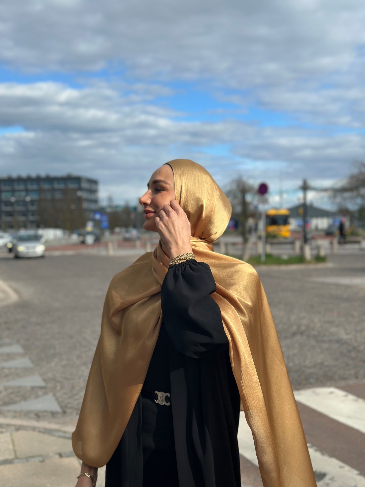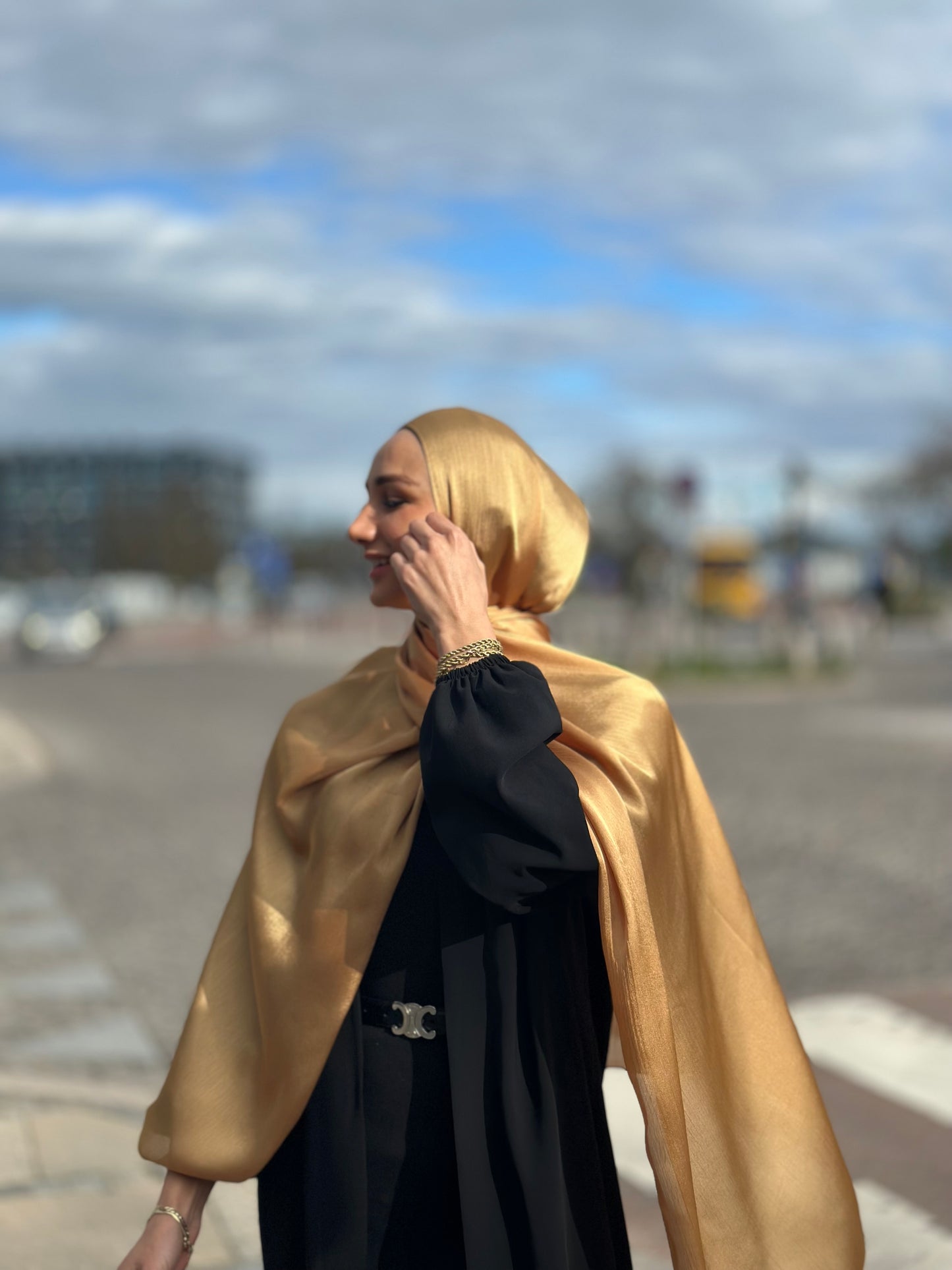 Elevate your look with the elegance and glamour of our Shiny Chiffon Hijab, exclusively from Sarah Collection. Designed with sophistication in mind, this hijab is crafted from high-quality chiffon infused with a subtle metallic shine, creating a luxurious silk-like appearance that adds a radiant glow to any outfit.
