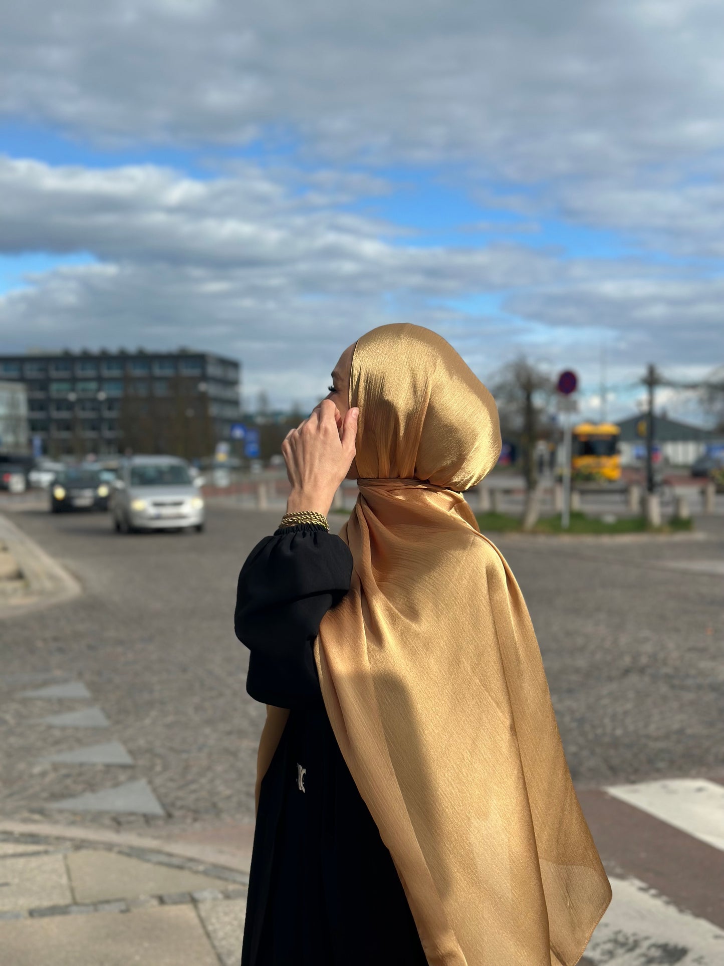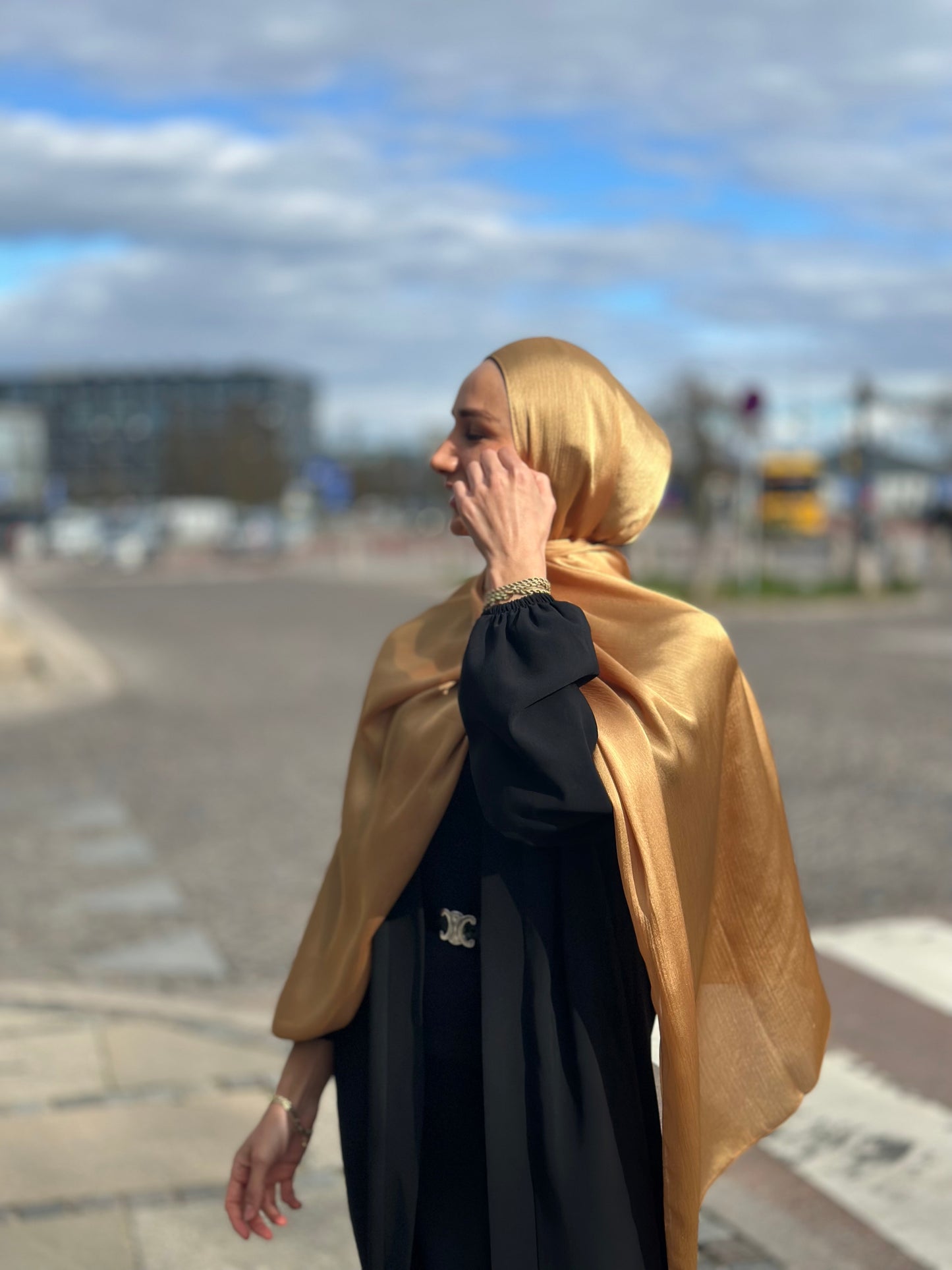 Perfect for festive occasions, weddings, and evening events, this hijab catches the light beautifully and offers a refined, polished finish to your ensemble. Its smooth, lightweight fabric drapes effortlessly and provides a graceful flow, while the generous size (190x75cm) ensures versatile styling options — whether you prefer a voluminous wrap or a sleek, minimalist look.