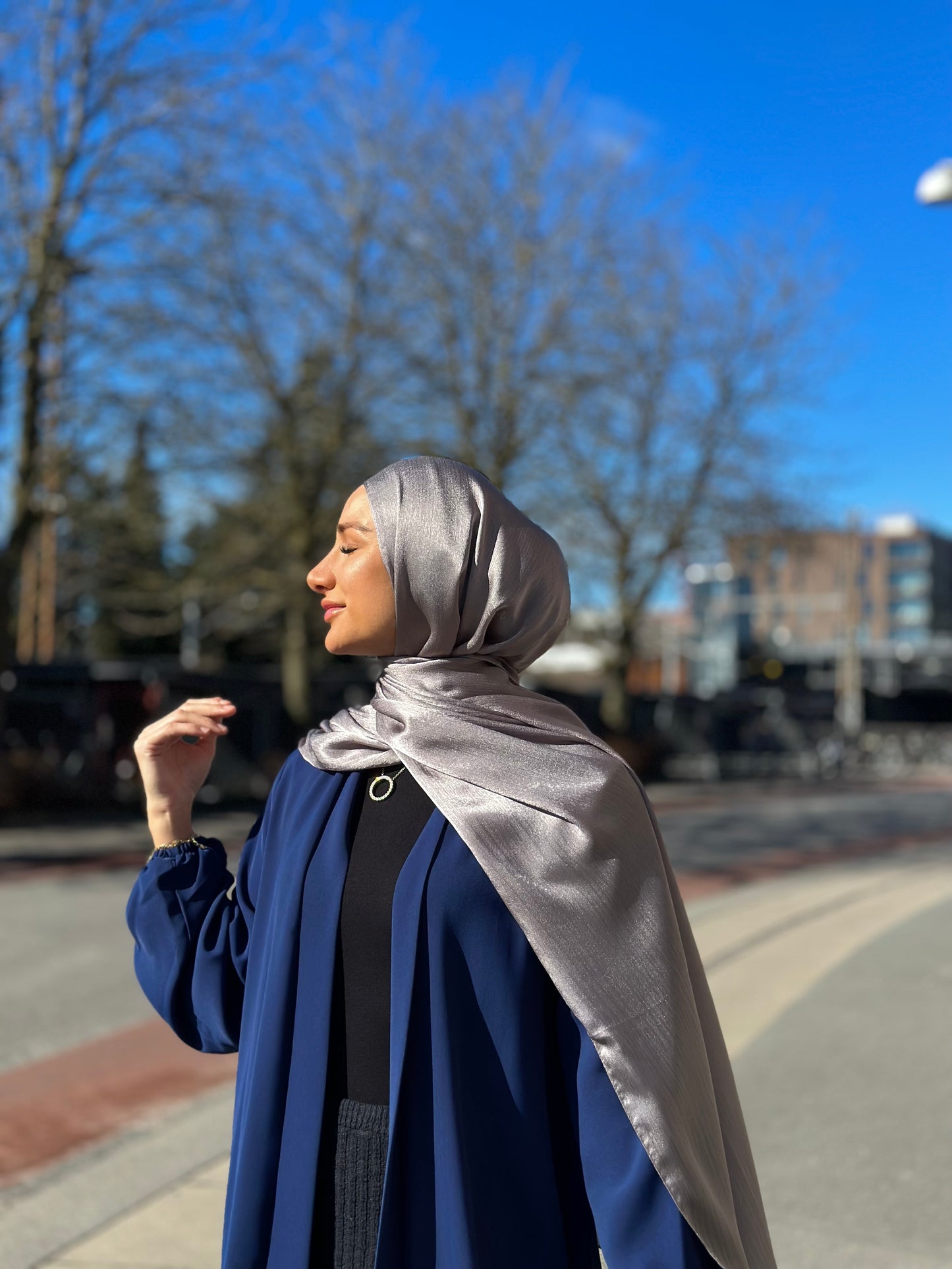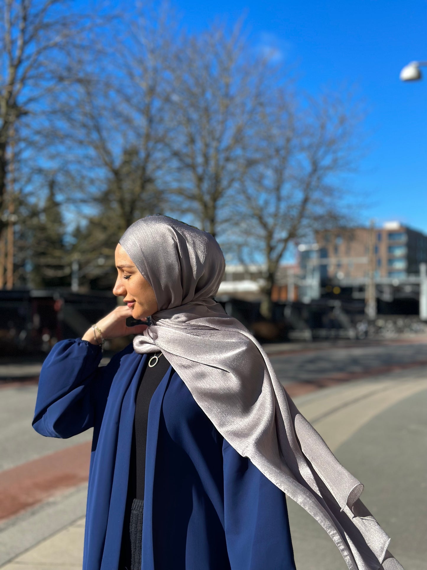 Elevate your look with the elegance and glamour of our Shiny Chiffon Hijab, exclusively from Sarah Collection. Designed with sophistication in mind, this hijab is crafted from high-quality chiffon infused with a subtle metallic shine, creating a luxurious silk-like appearance that adds a radiant glow to any outfit.
