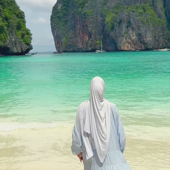 Its fluid drape and subtle sheen give it the name Liquid – gliding on smoothly and adapting naturally to your movements. Whether you're dressing for a busy day or an elegant evening, the Liquid Hijab adds a refined finish to any look.